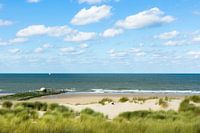 Hollandse kust op een mooie zonnige dag met een paar wolken. En twee kraaien in de duinen.