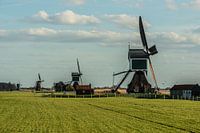 molens aan de dijk in Zuid Holland in de winter met drie molens in een rij.