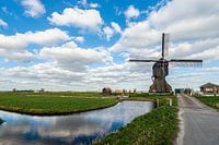 Hollandse windmolens in het mooie boerenland van de provincie Zuid Holland staan meestal aan het water of op een typische Nederlandse dijk.