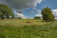Grazende koeien bij strowagen in Ooij bij Echteld. Ooij is overigens geen officiële plaatsnaam. Het is een toponiem van een buurtschap. Ooij wordt gerekend tot het buitengebied van het dorp Echteld.