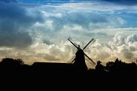 Hollandse windmolen landschap in silhouette met een typische Nederlandse wolkenlucht.