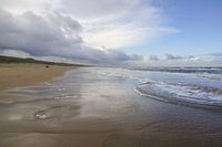 Wolkenlucht boven strand tussen Wassenaar en Katwijk. Kabbelende branding met veel rust en stilte