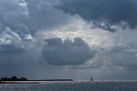 Prachtige wolkenluchten en schilderachtig mooi licht op een vroege zondagochtend aan het Ijsselmeer.