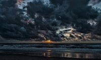 Donkere Hollandse luchten hangen er boven de zee.