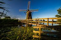 In het "gouden uur"zijn de kleuren in het Hollands Landschap op een mooist. De brug zorgt voor een mooie dieptewerking in de foto en neemt je mee naar de molen.