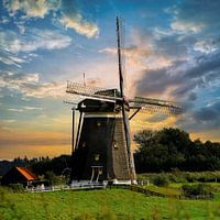 Een Hollandse molen in een weide landschap bij Stompwijk