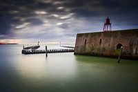 Hollandse wolkenlucht boven de haven van Vlissingen aan de Zeeuwse kust met een passerend schip op de achtergrond