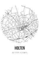 Zwart-witte landkaart, stratenplan of plattegrond van Holten. Holten is gelegen in Twente, in de gemeente Rijssen-Holten, provincie Overijssel. Op de stadskaart zijn alle openbare wegen in Holten opgenomen. Verder is de kaart voorzien van de coördinaten van het centrum van Holten.