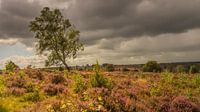 Een vergezicht op de Holterberg met bloeiende heide. een stukje van de Sallandse heuvelrug met bloeiende heide. Ook dit een een leefgebied van de Korhoen.