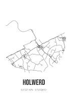 Zwart-witte landkaart, stratenplan of plattegrond van Holwerd. Holwerd is gelegen in de gemeente Noardeast-Fryslan, provincie Fryslan. Op de stadskaart zijn alle openbare wegen in Holwerd opgenomen. Verder is de kaart voorzien van de coördinaten van het centrum van Holwerd.