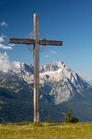 Holzkreuz am Wank mit Zugspitze im Hintergrund