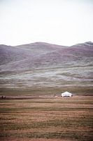 Een thuis in de velden en tussen de heuvels in Mongolië. Een verticaal landschap in de leegte van dit prachtige land.