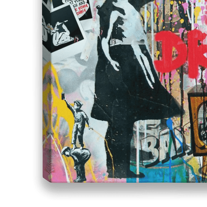 Volg je dromen. Decoratief hoogtepunt. Hommage, gebaseerd op de beroemde straatmuzikant Banksy.