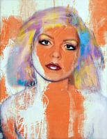 Decoratieve highlight, met oranje kleuren van kracht en positieve bron. Debbie Harry in grungestijl.