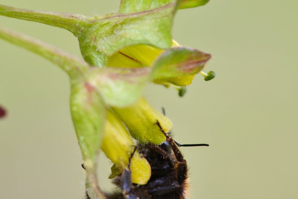 Hommel op een bloem die nectar verzamelt. Insect uit de natuur aan het eten. Macro-opname van een insect