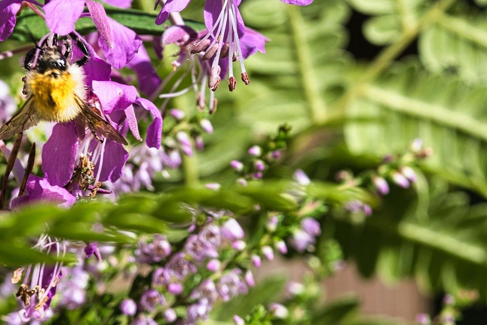 Hommel op een bloem die nectar verzamelt. Insect uit de natuur aan het eten. Macro-opname van een insect