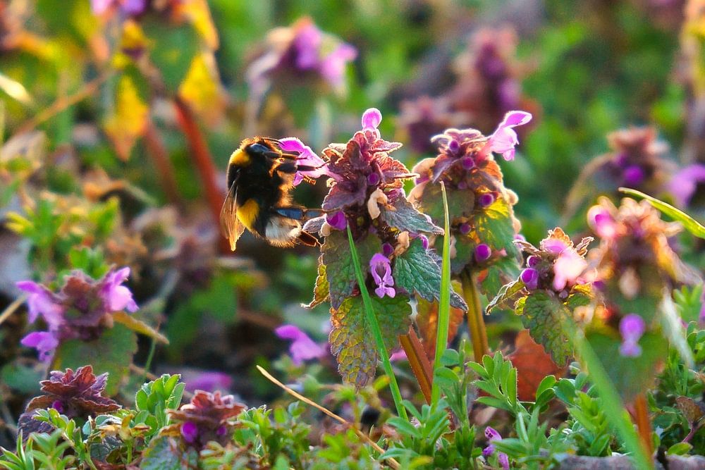 Hommel vliegt op een bloem om nectar te verzamelen. Insect uit de natuur aan het eten. Macro-opname van een insect