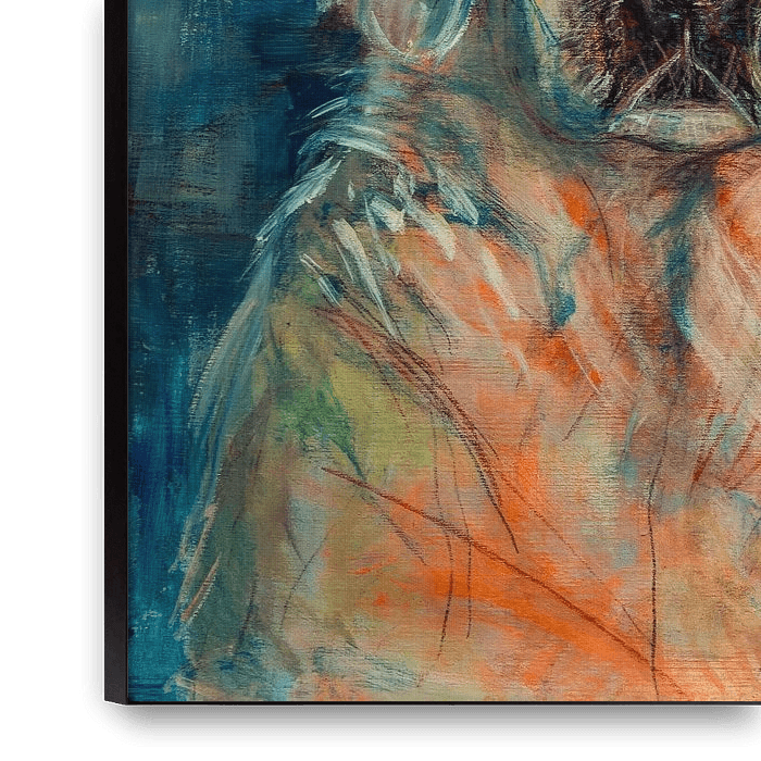 Jouw gekozen kunst als print op doek, gespannen in een aluminium frame. Snel en eenvoudig te verwisselen voor een frisse uitstraling, helemaal zoals jij het wilt.