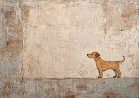 Hond | Hond op Aardetinten - Op dit schilderij zie je een schattige hond die met een nieuwsgierige blik naar links kijkt, tegen een achtergrond in aardetinten van beige en off-white, typisch voor modern abstracte kunst.