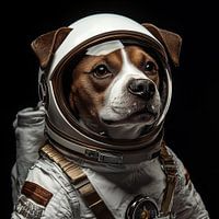 Deze hond astronaut portret schilderij is een speelse en stijlvolle interpretatie van klassieke portretkunst, waarin een hond in een astronautenpak centraal staat. Tegen een diepe, zwarte achtergrond komt het gedetailleerde ruimtepak prachtig tot zijn recht, terwijl de expressieve blik van de hond een unieke combinatie van kracht, rust en humor uitstraalt.