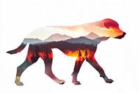 Een majestueuze hond zwerft door een dromerig landschap van stralende zonsondergangen en majestueuze bergen. Deze harmonieuze combinatie van dier en natuur wekt verlangens op naar avontuur en vrijheid. Ideaal voor de woonkamer, het brengt een vleugje gezelligheid en reislust in elke kamer.