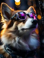 Een schattige hond met glinsterende ogen en een paarse bril steelt harten met zijn unieke stijl. Zijn kwispelende staart en speelse houding verspreiden vreugde om hem heen. De paarse bril voegt een vleugje ondeugendheid toe aan zijn charmante voorkomen, waardoor hij een onweerstaanbare en eigenzinnige persoonlijkheid heeft die iedereen betovert.