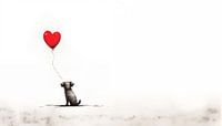 De zorgvuldig gekozen kleurtinten geven het schilderij een levendige, maar toch rustige uitstraling. De balans tussen zachte en warme kleuren zorgt ervoor dat het niet te druk oogt, terwijl het ontwerp juist opvalt door zijn originaliteit. De subtiele achtergrond versterkt de focus op de hond en de hartvormige ballon, wat dit kunstwerk een charmante en liefdevolle uitstraling geeft.
