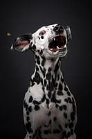 Beeld met humor van een Dalmatiër hond die honden snoepjes probeert te vangen. Van dit beeld zijn meerdere varianten verkrijgbaar. Ook leuk als meerluik bijvoorbeeld!