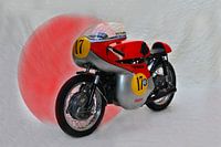 Rood, klein, snel en mooi Deze Japanse racemachine baarde opzien tijdens de Tourist Trophy op het eiland Man. Tal van wereldberoemde racers zagen de geblokte vlag op de eerste rij met deze machine.