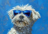 Details: hond, zonnebril, blauw, wit, portret, schattig, grappig, modern, dierlijk, kunst