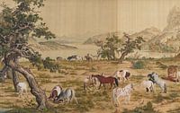 Giuseppe Castiglione: Honderd paarden, jaar 1728. Handscroll, inkt en kleuren op zijde.