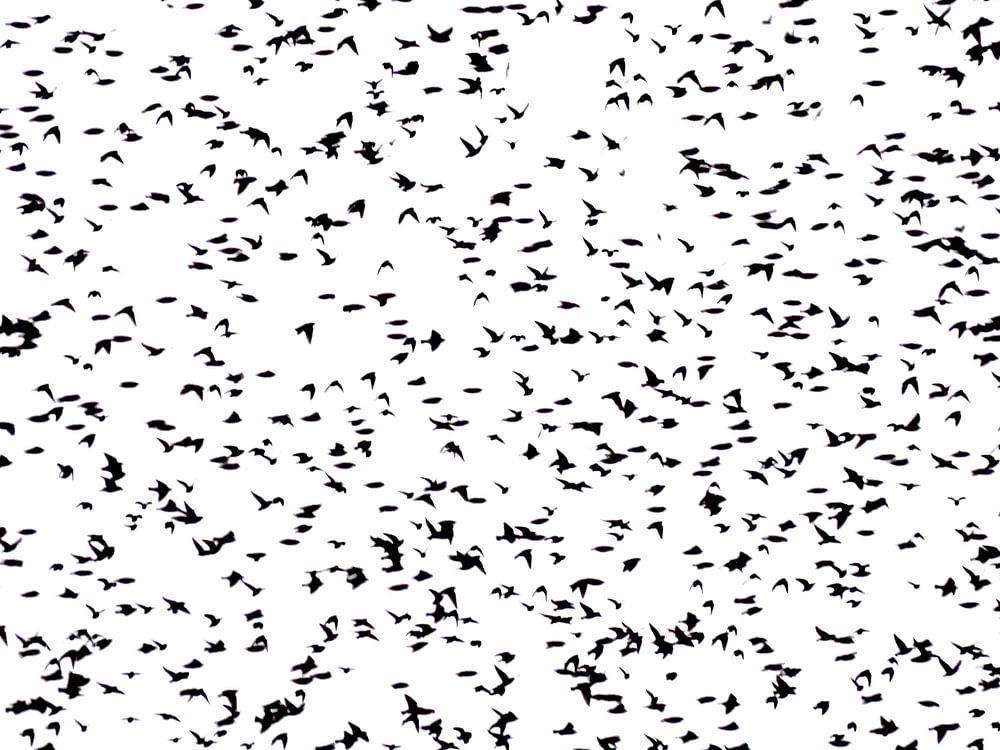 Ineens waren ze daar, honderden vogels in de lucht. Alsof we in de film Birds van Alfred Hitchcock terecht waren gekomen. Eerst bleef ik nog in de auto zitten, het was een beetje beangstigend, maar daarna wilde ik het toch vastleggen. Even daarna gingen ze met z'n allen op een elektriciteitskabel zitten.