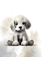 'Hondje voor kinderkamer' is een tekening van een hondje die mooi zou staan in een baby of kinderkamer. Er is gebruik gemaakt van waterverf en zachte kleuren.