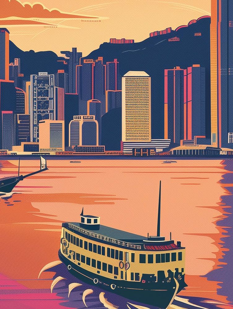 Dompel jezelf onder in de dynamische geest van Oost-Azië met deze spectaculaire reisposter van Hong Kong. De compositie toont de wolkenkrabbers en torenhoge monumenten van de stad, die allemaal oplichten onder een kleurrijke zonsondergang die Victoria Harbour perfect omlijst. De legendarische Star Ferry steekt het glinsterende water over, terwijl een traditionele jonkboot vlakbij vaart, waardoor oude en nieuwe werelden samensmelten in één boeiende scène. Het gedurfde gebruik van paars, roze en oranje tinten roept de drukte en opwinding op van het beroemde stadslandschap van Hong Kong, waardoor dit kunstwerk een ideaal middelpunt vormt voor zowel hedendaagse als retro-geïnspireerde ruimtes. Deze print is perfect voor liefhebbers van stedelijke avonturen, reisfanaten en bewonderaars van Aziatische bestemmingen en biedt zowel kosmopolitische flair als een gevoel van ontsnapping. Breng de energie, cultuur en panoramische schoonheid van Hong Kong in je huis, kantoor of werkruimte of geef het cadeau aan iemand die gepassioneerd is door het bruisende stadsleven.