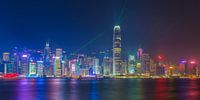 Deze foto is gemaakt vanaf de kade in Kowloon in Hong Kong. Het uitzicht hier vandaan op de skyline en de lasershow is erg indrukwekkend.