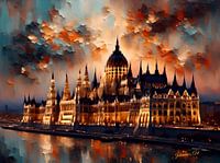 Dompel jezelf onder in de magie van Boedapest met dit prachtige beeld van het Hongaarse parlementsgebouw bij zonsondergang. De iconische gotische architectuur baadt in een warme gouden gloed en creëert een adembenemende weerspiegeling op de rivier de Donau. Laat de grootsheid en elegantie van dit meesterwerk je meevoeren naar het hart van Hongarije. Dit is niet zomaar kunst, het is een uitnodiging om de magie van Europa's verborgen juweel te ervaren.