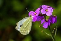 koolwitje eet de nectar van de Erysimum Bowles Mauve