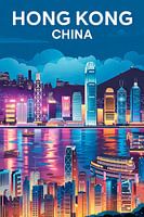 Een fonkelende zee van lichtjes brengt de skyline van Hong Kong tot leven. Hoge, moderne wolkenkrabbers worden weerspiegeld in het glinsterende water, terwijl de zachte omhelzing van de bergen op de achtergrond een vleugje natuur toevoegt. Deze bruisende metropool combineert traditie en vooruitgang onder een helderblauwe hemel die een sfeer van avontuur en ontdekking belooft.