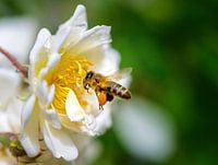 Koop dit bloemen kunstwerk Honingbij nadert een rozenbloesem van ManfredFotos op canvas, aluminium dibond, (ingelijste) fotoprint, behang en ArtFrame, op maat geprint in Fine-Art kwaliteit.