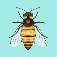 Een potlood tekening van een honingbij. Digitaal aangepast en ingekleurd en op een turquoise achtergrond geplaatst voor een mooi kleurcontrast.