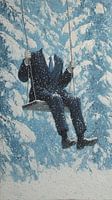 Hoofd Vrij - Eerst valt de verstilling op: een keurige man in een donker pak zit op een eenvoudige houten schommel, hoog opgespannen tussen twee touwen, maar het belangrijkste ontbreekt — het hoofd. Die afwezige kop geeft het beeld een speelse, licht ondeugende twist, alsof de kerstman even zijn identiteit opbergt om van de sneeuw te…