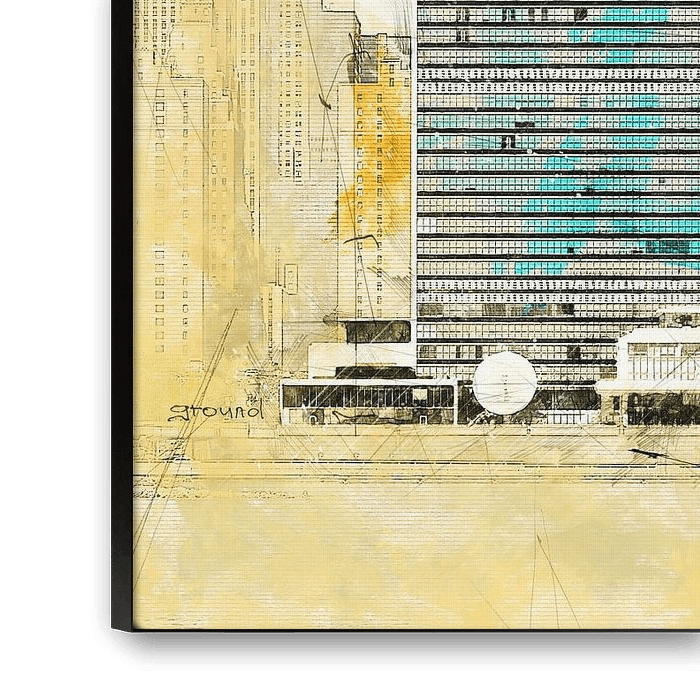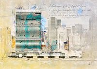 De skyline van midtown Manhattan met het hoofdkwartier van de Verenigde Naties en verschillende andere wolkenkrabbers