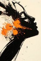 Een krachtig samenspel van dynamische lijnen en levendige oranje accenten ontvouwt zich in een elegant profiel. De explosieve energie van de kleuren straalt creativiteit en inspiratie uit. Dit kunstwerk is perfect voor een woonkamer, waar het een gesprek op gang brengt en de verbeelding prikkelt, terwijl het een vleugje moderniteit…