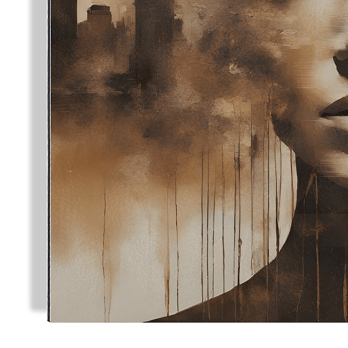 Verwelkom de verfijnde schoonheid van een abstract werk waarin het vrouwengezicht met skyline schittert in weelderige bruin- en goudtinten. De sierlijke penseelstreken creëren een subtiel samenspel van emotie en mysterie, waardoor het werk een tijdloze en betoverende uitstraling krijgt. De warme kleuren brengen een gevoel van luxe en…