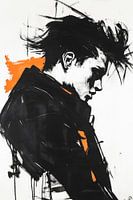 Een krachtig portret met dynamische lijnen en een vleugje oranjekleurige intensiteit vangt de zintuigen. De peinzende uitdrukking van de jonge hoofdpersoon straalt een intrigerende melancholie uit die karakter toevoegt aan elke kamer. Idealiter zou dit kunstwerk schitteren in een moderne woonkamer of een creatief kantoor en inspirerende gesprekken stimuleren.