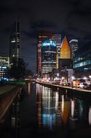 Hoogbouw Den Haag, nacht en weerspiegeling