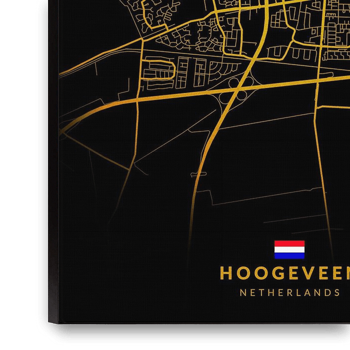 Stadsplattegrond Hoogeveen Nederland, ontworpen door Maruyama. Een perfecte decoratie voor je muur om authenticiteit toe te voegen aan je huis.