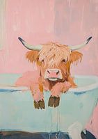 Een Highland koe in bad prikkelt de verbeelding door de ruige natuur van de Highlands te combineren met de vertrouwdheid van het dagelijks leven. Deze humoristische foto inspireert ons om nieuwe perspectieven in te nemen en tegenstellingen als een verrijking te zien. Het laat zien dat creativiteit en lichtheid helpen om het bijzondere in het gewone te ontdekken. Met zijn grillige charme staat dit tafereel symbool voor onconventioneel denken.