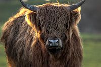 jonge hooglander, nieuwsgierig en met brutale blik.