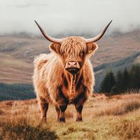 In de zachte omhelzing van de Schotse Hooglanden staat het imposante Schotse hooglandrund met zijn opvallende, ruige vacht en majestueuze, gebogen horens. Zijn blik straalt zowel kalmte als vastberadenheid uit, terwijl het mistige landschap op de achtergrond een mystieke sfeer creëert. Een symbool van wildheid en traditie te midden van ongerepte natuur.
